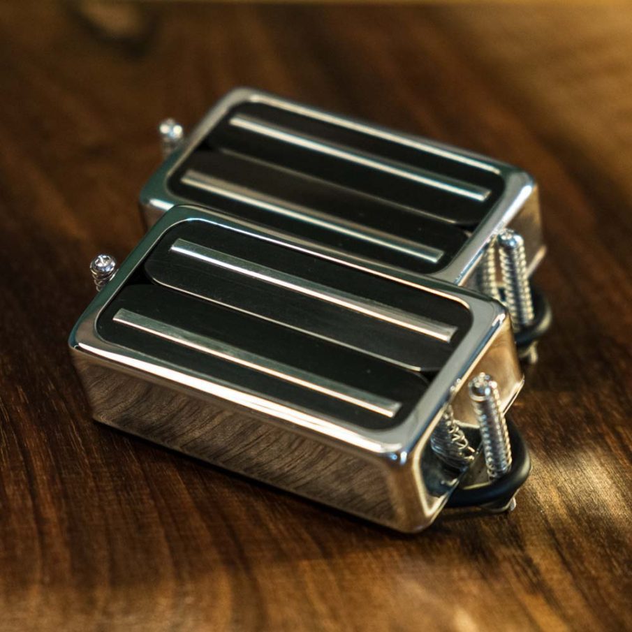 Le micro, fabriqué et bobiné à la main en Normandie, est équipé d’un capot ouvert qui protège le bobinage (la partie fragile et vitale) tout en respectant le son du micro. Ce capot, chrome, noir cosmo ou doré, conjointement aux rails apporte une touche originale et unique à ce set.